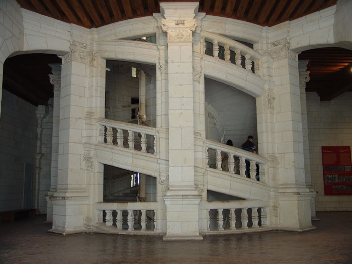 Le Château de Chambord est le plus grand et le plus caractéristique des châteaux de la Loire du fait de son architecture typique de la Renaissance française, qui mélange les formes médiévales françaises et des structures classiques italiennes. Bien qu'étant actuellement le plus grand de ces châteaux, celui de Chambord n'a été à l'origine conçu que pour servir de relais au roi François Ier lorsqu'il allait chasser dans la région. Ses résidences principales demeuraient à Blois et Amboise. Sa conception est attribuée à Domenico da Cortona et à Philibert Delorme ainsi qu'à Léonard de Vinci qui aurait notemment conçu le fameux escalier à double spirale. Le château mesure 156 mètres de long, 56 mètres de haut, possède 77 escaliers, 282 cheminées et 426 pièces. Le parc et le domaine qui y sont associés ont une superficie équivalente à celle de la ville de Paris. Une des attractions architecturales est l'escalier à double hélice attribué à Léonard de Vinci. Situé au centre du château, il est constitué de deux hélices qui desservent les trois étages sans jamais se croiser. François Ier, celui qui a ordonné l'édification du château, n'y résida en tout que 72 jours en 32 ans de règne. A sa mort en 1547 la construction n'est pas encore achevée. Le château est alors abandonné et ce n'est qu'en 1639 que Louis XIII le donne à son frère Gaston d'Orléans. Louis XIV y a également séjourné. Le château fut également habité par Stanislas Leszczynski, roi de Pologne en exil et beau-père de Louis XV, de 1725 à 1733. Au XIXème siècle le château revint au comte de Chambord. A la mort de ce dernier sa soeur, la duchesse de Parme, en hérita. Le château de Chambord fut racheté en 1930 par l'Etat français.